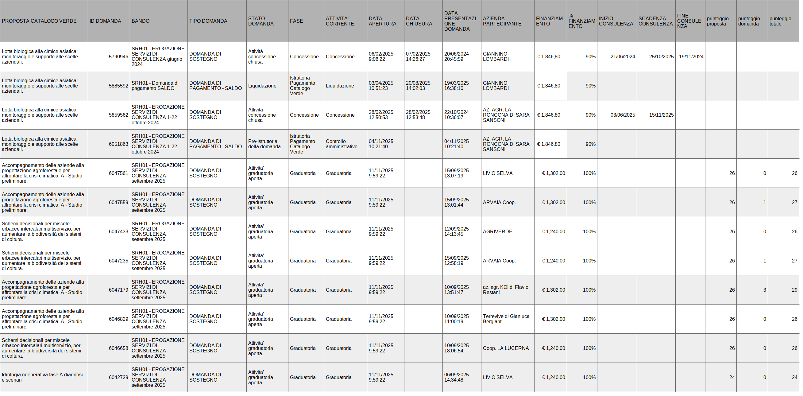 Le concessioni di sostegni finanziari attive per l’intervento SRH01 sono: